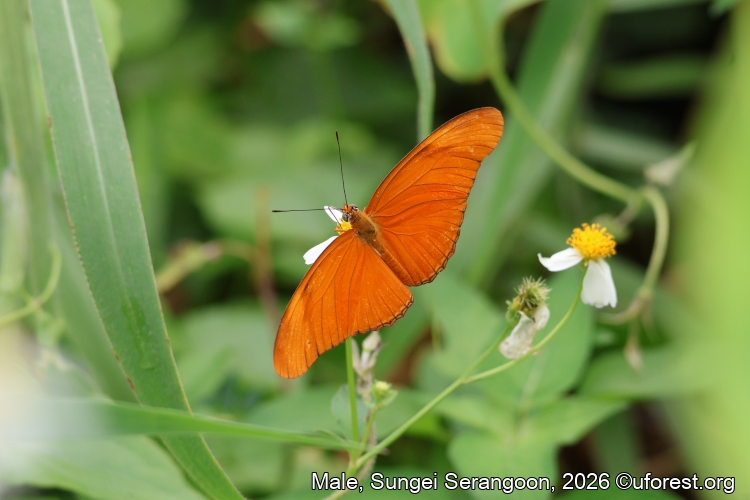 On the upper wing surface, the wings are bright orange in the male and duller orange in the female. The males also have thin black borders along the wing margin, with those in the female broader and more extensive. This butterfly is newly recorded in 2021 (butterflycircle.blogspot.com)