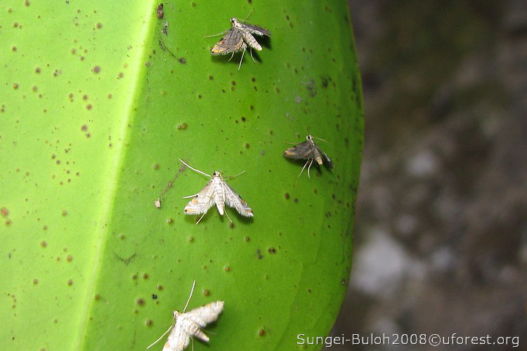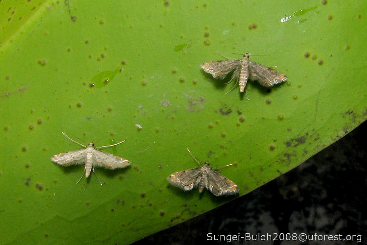 This is a moth found in the mangroves, first described in Singapore by Dennis H. Murphy. The larvae are aquatic and feed on brown algae. The males have silvery wings while the females are darker. They often rest on the underside of leaves.