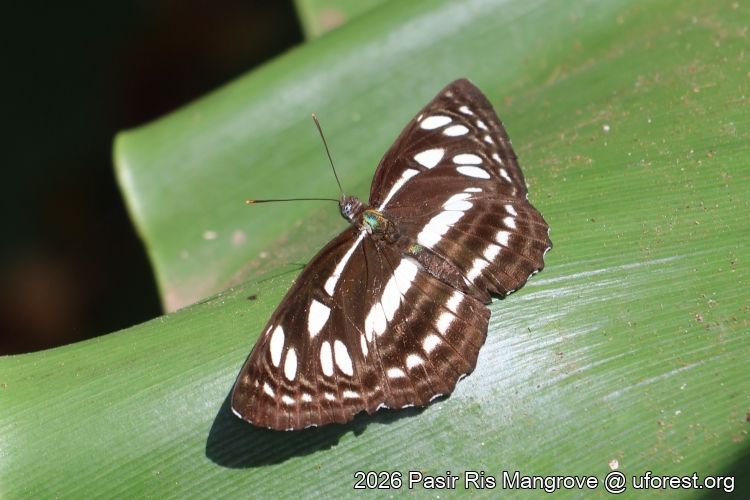 A common butterfly in parks and forests. It is one of the three white banded Sailors in Singapore. The young instar caterpillar has a habit of resting on the naked mid-vein of the host leaf after eating the lamina on the sides.