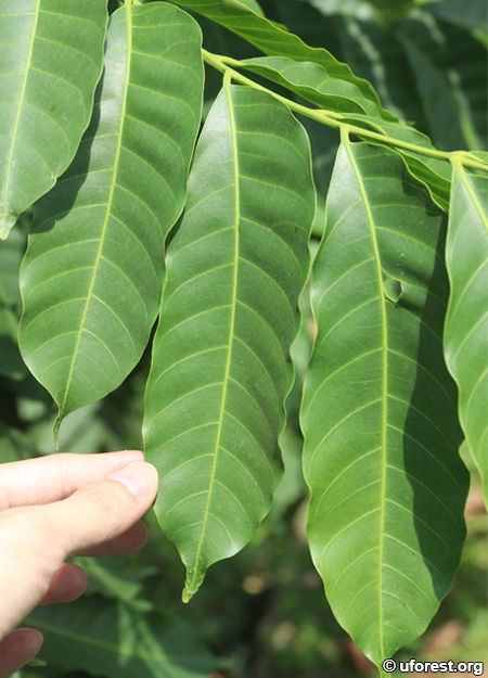 Aphanamixis polystachya is a very common tree found on forest edges of abandoned plantations. As a native tree, it is also found within our secondary and primary forests. It can be easily identified from its imparipinnate leaves, with each leaflet being asymmetrical and wavy on the margins, together with an acute tip.