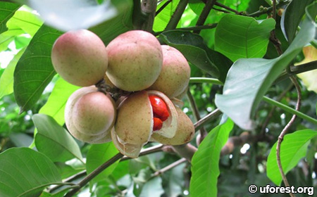 Red fleshy pulps revealed in the fruit.