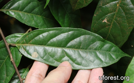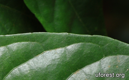A small shrubby tree that grow up to 25m. The secondary veins of the leaves are depressed, and are intramarginally looped. The leaf margins are also slightly crenate. The flowers are borne on yellow spikes and the fruits are rounded.