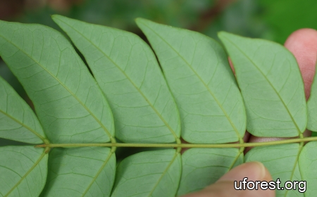 Compound leaf with unique rhomboid leaflets.