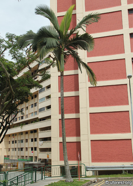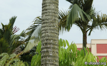 Archontophoenix alexandrae is a commonly cultivated palm. The graceful single-stem palm has greyish-green leaves and crown shaft. The fronds is slightly twisted along the length to be almost vertically positioned. The leaflets are stiff and straight.