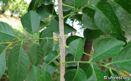 Tiny flowers and young fruits sticking from the terminal of the branch.