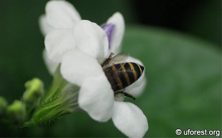 The flowers are frequently visited by honey bees.