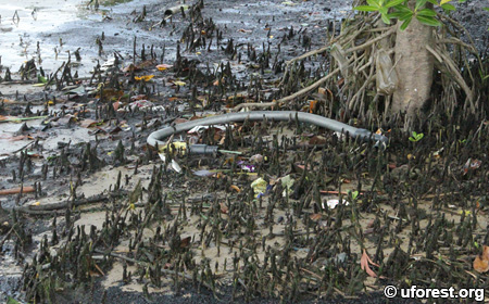 Api Api Putih is a pioneering species that grows on newly formed mud, with its roots said to aid in sediment accretion and land building (Giesen et al., 2006). From Giesen et al. (2006), it has various uses, including: "firewood and low quality construction timber; sap used to prevent pregnancy, seedlings cooked and eaten as a vegetable; seeds are a source of resin and ointment for treating skin diseases and wounds."