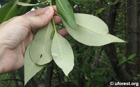 Avicennia alba is a common tree that grows at the seaward side of the mangroves. As with all in the genus, it has thin pencil roots that sticks out of the mud. The leaves are diagnostic with usually narrow and pointed leaves with white underside. The fruits are tear-drop shaped.
