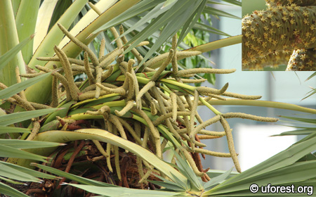 Male inflorescence are branched and tube-like. The flowers are very small.