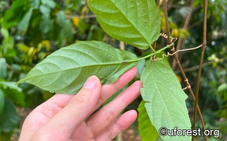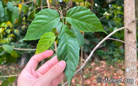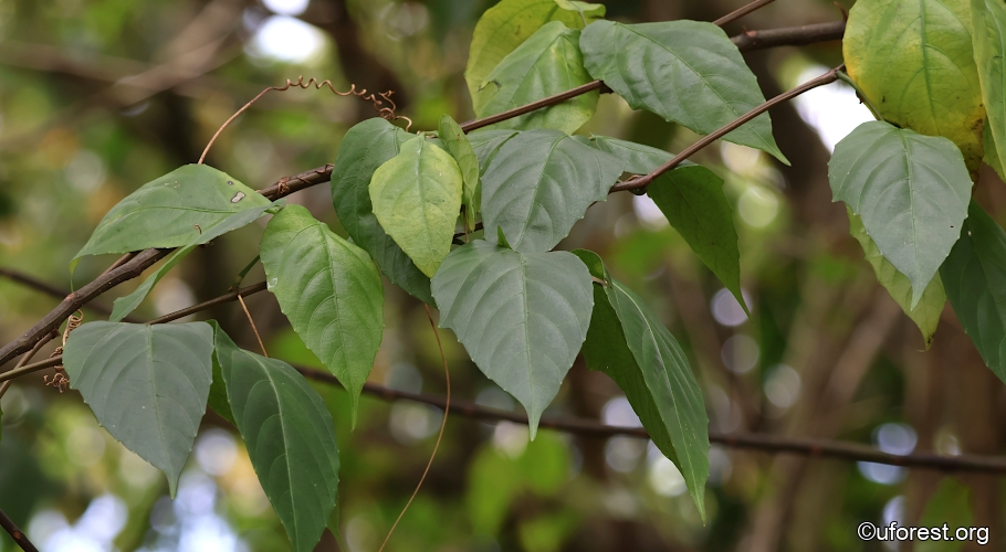 A woody climber that is recorded at Singapore Botanic Gardens jungle and Macritchie Reservoir. The leaves are trifoliate. The stem and leaves are covered densely with hairs, but there is another form with very sparse hairs (Yeo et al., 2012). The fruits are most distinct, ripening to pink grape-like berries, but they are unpalatable due to the presence of oxalate crystals.