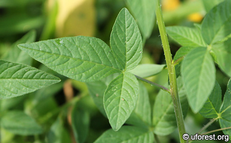 Trifoliate leaves. Each leaflet does not have a stalk.