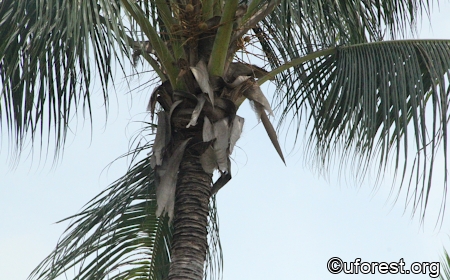 Cocos nucifera is commonly found at all coastal tropical beaches. Its distinct huge fruits makes them easily identifiable.