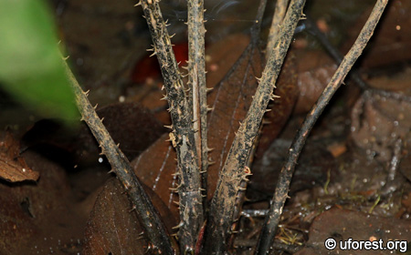 The petioles are covered with sharp prickles.