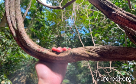 Woody climber to 20m, with several nice specimens along Lornie Trail. The leaves are compound and oppositely arranged, with up to 11-19 oblong leaflets (Balslev & Chantaranothai, 2018–2023). The young leaflets are densely covered with small brown hairs, making them velvety to the touch.