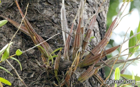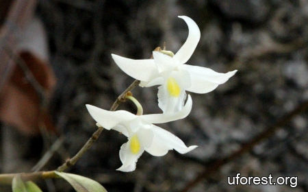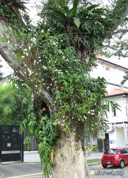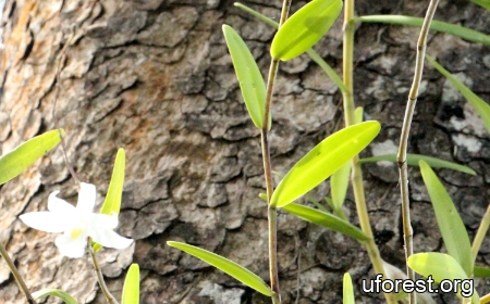 An epiphytic orchid species that is commonly seen on our urban trees. The stems have a swollen pseudo-bulb new the base. The white flowers have a yellow centre. Flowering is triggered about nine days after a period of rain due to a fall in temperature (Polunin, 2010).