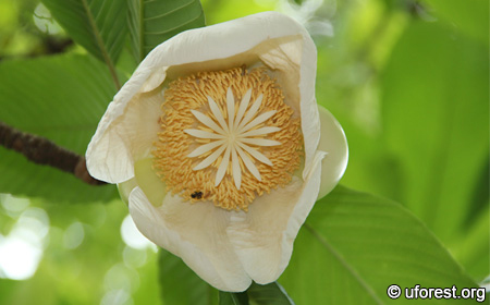 The flowers with white petals droop downwards. Their inconspicuousness probably meant that they attract the pollinators by emitting scent. I have never attempted to smell them before, less I offend the bees they attract. The Elephant Apple's fruits are interesting because the sepals thicken and overlap each other, protecting the green flesh embedded with numerous seeds. The fruits are said to be eaten by elephants, but according to Corner (1997), the species, which grow along streams and rivers, are water-dispersed. The seeds will germinated when washed ashore.