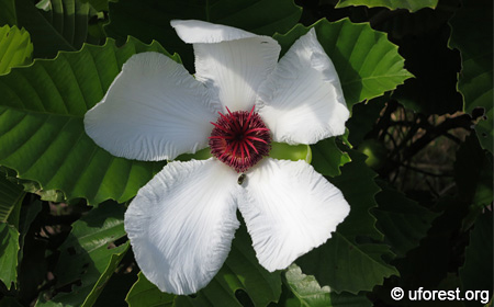 Dillenia philippinensis is a small shrubby tree. It is easy to tell from its large attractive flowers, which come in five white petals and a red centre. The leaves are serrated along the margins and has a non-persistent stipule along the leaf stalk that will turn brown and wilt off eventually.
