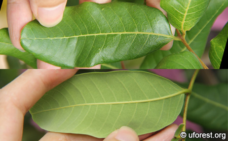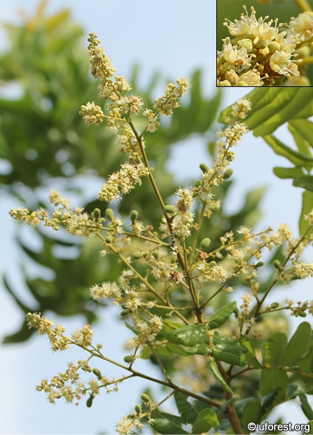 Dimocarpus longan ssp. (subspecies) longan is a shrub easily recognisable by its foliage. The leaflets are frequently curved inwards and the lower surface is smooth because of fine hairs.Another subspecies Dimocarpus longan ssp. malesianus is a tree with large leaves, quite commonly found in abandoned plantations turned forests now.