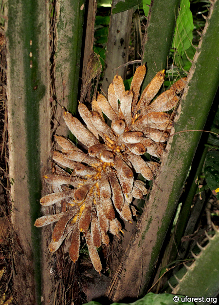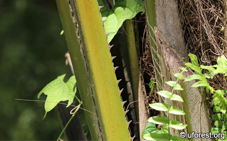 Form with the leaves pruned, leaving the petioles for epiphytes to thrive.