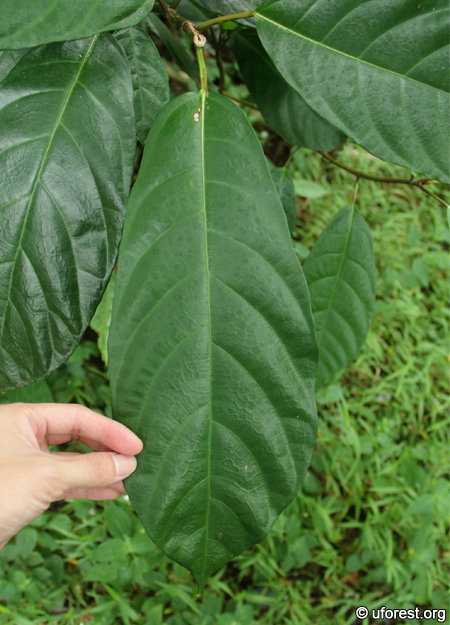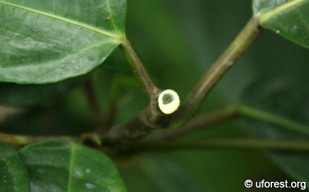 Ficus fistulosa is a very common fig tree in secondary forests. It can be easily recognised by two characters. First, the shape of the leaves, being elongated and broader at the ends. Second, it is only one of the two native fig tree species that produce figs on their trunks and branches; the other being Ficus variegata (Ng et al., 2005). The young twigs are also hollow.