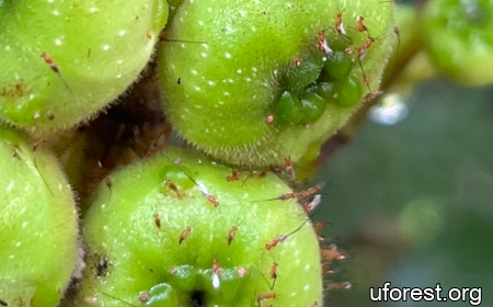 Female fig wasps clustering around the fig.