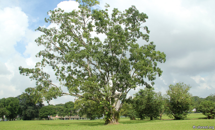 The Bodhi Tree is revered by Buddhists and Hindus (Tan & Giam, 2008). This is the tree where Siddharta Gautama, the Buddha sat under when he gained enlightment in Bodhgaya, India. A cutting from this particular tree was planted in Anuradhapura, a city in Sri Lanka. The one in our Kong Meng San Monastery (the largest Buddhist temple in Singapore) is thus a third generation clone from the original tree (see picture below).