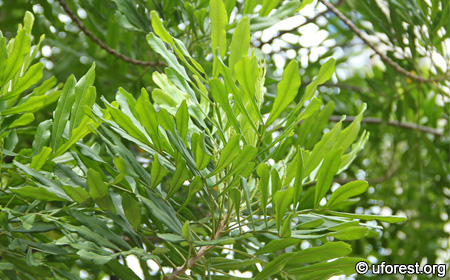 Filicium decipiens is a common cultivated tree. It has a rounded, dense crown, with pinnate leaves that gives the foliage a feathery appearance. The diagnostic is the "wing" along the leaf stalk.
