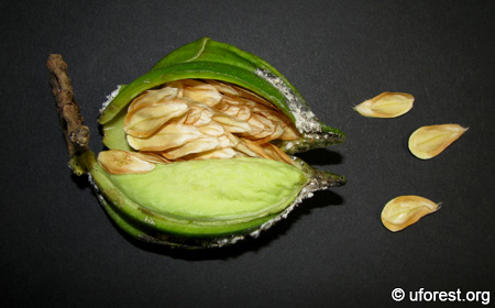 Fruit split to disperse flattened seeds.