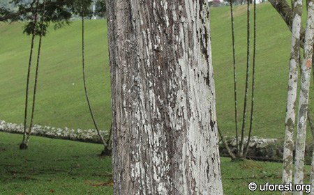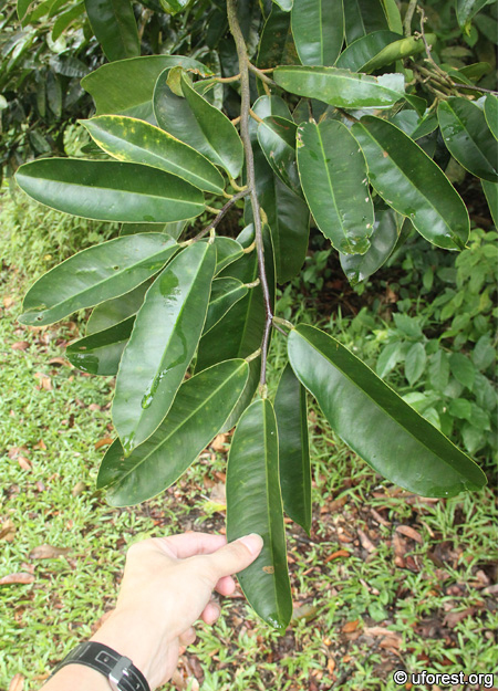 Gonystylus confusus is a tree found native in our rainforests. The leaves are quite distinctive, being long and leathery, with a slight curl at the margins. The mid-vein is also raised at the back and the petiole is swollen.