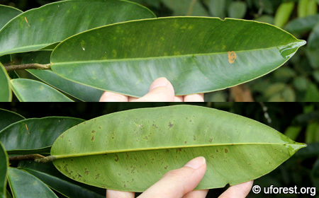 Leaf branch. Note the leathery leaves and light colour at the margins.