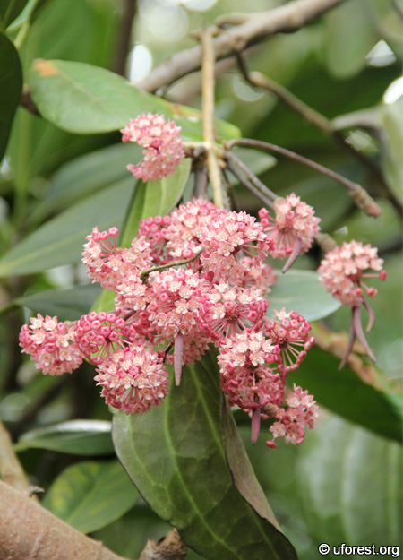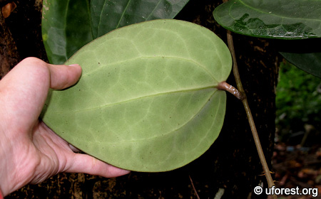 The scientific and common name of Hoya latifolia says it all, the large leaves is the key to identify it. It is also thick and heart-shaped with distinctive venation. The young leaves having a reddish-orange colour. The flowers may be either red or white.