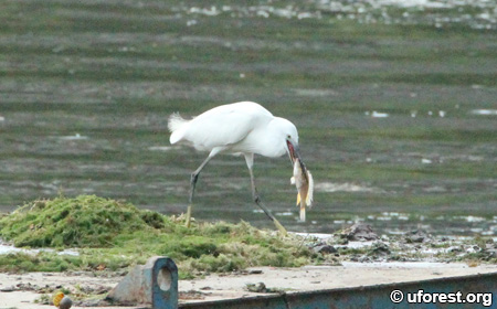 Opportunistic feeding from an Egret, plucked when the weed was first lifted from the water.
