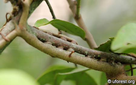 Suction-cup like haustoria attaching to the host tree.