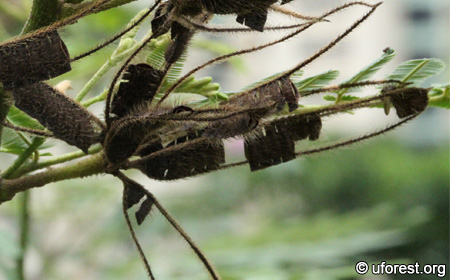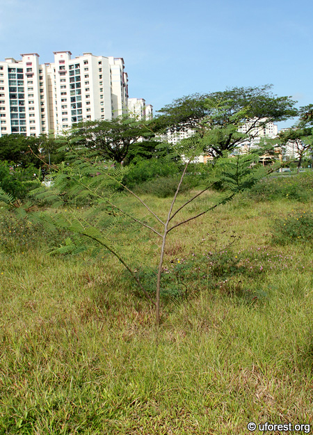Mimosa pigra bears the infamous title of being listed as one of the 100 most invasive species in the world, together with Leucaena leucocephala (Lowe et al., 2004). It is able to establish in both wet and dry lands to form "thorny, impenetrable thickets over large areas" after disturbance (Weber, 2003). However, it only appears to be sparingly commonly in Singapore and does not occur at high densities.