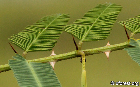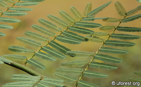 Leaves are bipinnate and bears many fine leaflets per pinna.