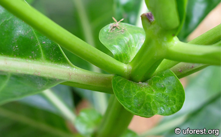 The Noni is frequently occupied by weaver ants. I also noticed many butterflies and sunbirds attracted to the plant, possibly with the lure of nectar from the flowers or developing fruits.