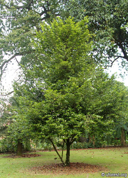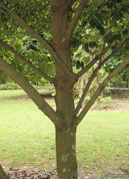 Myristica fragrans was introduced to Singapore by Sir Thomas Stamford Raffles in 1802, and were planted at the foot of Government Hill (now Fort Canning Hill) to experiment its cultivation for spice trade (Wheatley, 1954). A craze for nutmeg soon started, and by 1848, there were about 56,000 trees in 24 plantations covering an area of 480 ha (Ridley, 1897; Wikkramatileke, 1965). However, in 1859, a disease from a beetle spread from Malaysia to Singapore and wiped out most of the trees (Burkill, 1966). Presently, Nutmeg trees can only be found sparingly in several parks, including the Singapore Botanic Gardens.