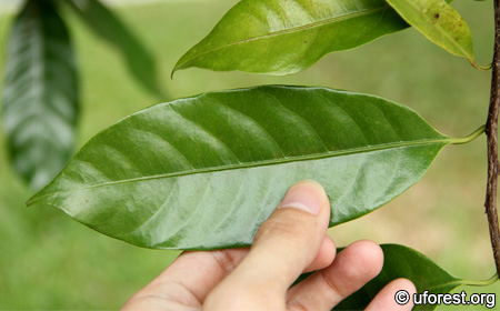 Leaves are shiny with a distinct tip.