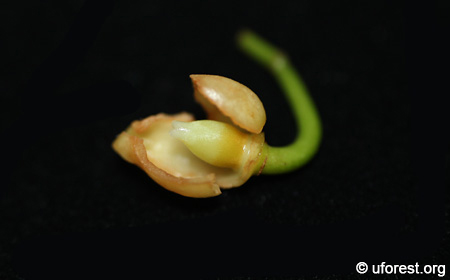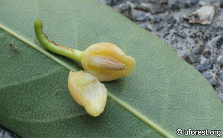 The sepal is peeled off to show the female flower part.