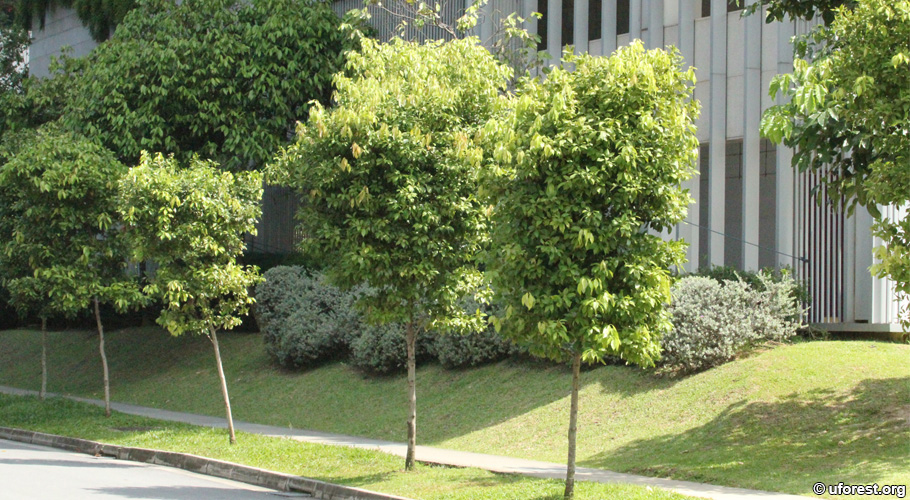 A row of Shore Laurel at Mapletree Business City (2018).