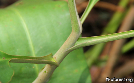 Long distinct petiole which extends a little onto the stem.