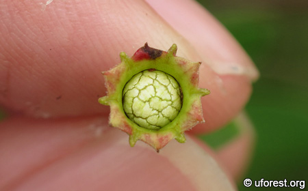Removing it reveals a jigsaw puzzle-like cluster of seeds.