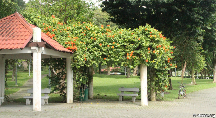 Climbing over shelter at Lower Seletar Reservoir Park (2018).