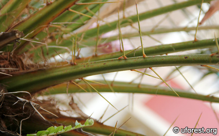 Long spines are found near the leaf stalks.