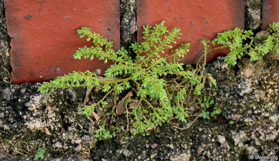 Pilea microphylla, a very common herb jutting out of concrete gaps.