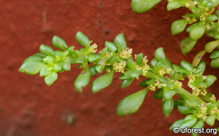 Male and female flowers, and the fruit are about or less than 1 mm.
