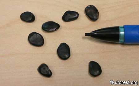 Seeds are dark brown and flat.