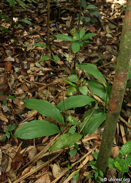 Mousetrap Orchid with inflorescence stalk in Nee Soon Swamp Forest.