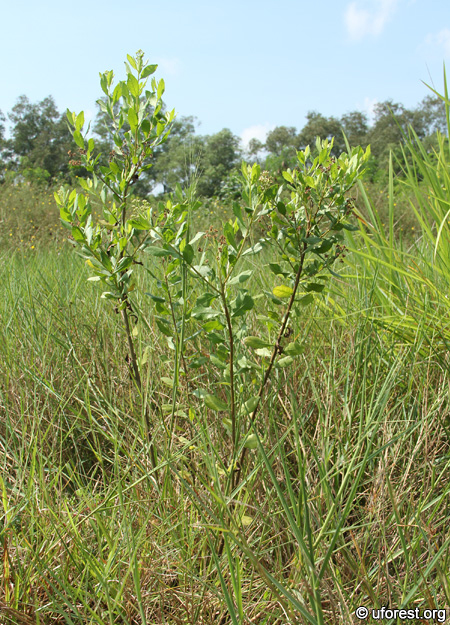 Pluchea indica is a shrub of about 1.5m. It can be found in coastal areas and scrublands, though I have seldom seen them around despite having a common status. It can be easily identified from its serrated and thick leaves and spiral arrangement.