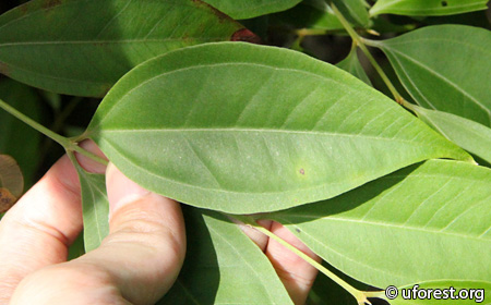Leaf upper surface showing the tri-vein.